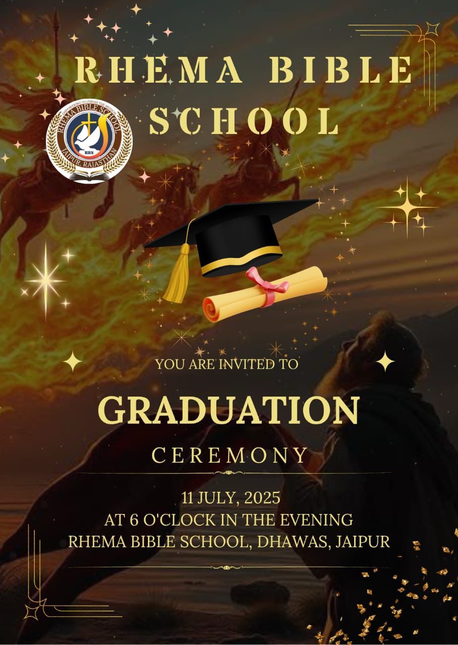 ജയ്പൂർ: ചർച്ച് ഓഫ് ഗോഡ് ഇൻ ഇന്ത്യ നോർത്തേൺ റീജിയൻ്റെ നേതൃത്വത്തിൽ ജയ്പൂരിൽ നടത്തുന്ന രഹ്മ ബൈബിൾ സ്കൂളിന്റെ 1,2 ബാച്ചുകളുടെ ഗ്രാജുവേഷൻ ചടങ്ങ് 2025 ജൂലൈ 11 വെള്ളിയാഴ്ച വൈകിട്ട് 6 മണിക്ക് ജയ്പൂർ ചർച്ച് ഓഫ് ഗോഡ് (ഫുൾ ഗോസ്പൽ) ധവാസ് ചർച്ചിൽ വെച്ച് നടത്തപ്പെടുന്നു. കഴിഞ്ഞ ചില വർഷങ്ങളായി പാസ്റ്റർ ബ്ലസൻ ജോണിൻ്റെയും സഹധർമ്മിണി പ്രസില്ലാ ബ്ലസൻ്റെയും ചുമതലയിൽ നടന്നുവരുന്ന ബൈബിൾ സ്കൂളിൽ ആദ്യമായാണ് ഗ്രാജുവേഷൻ പ്രോഗ്രാം നടത്തുന്നത്.