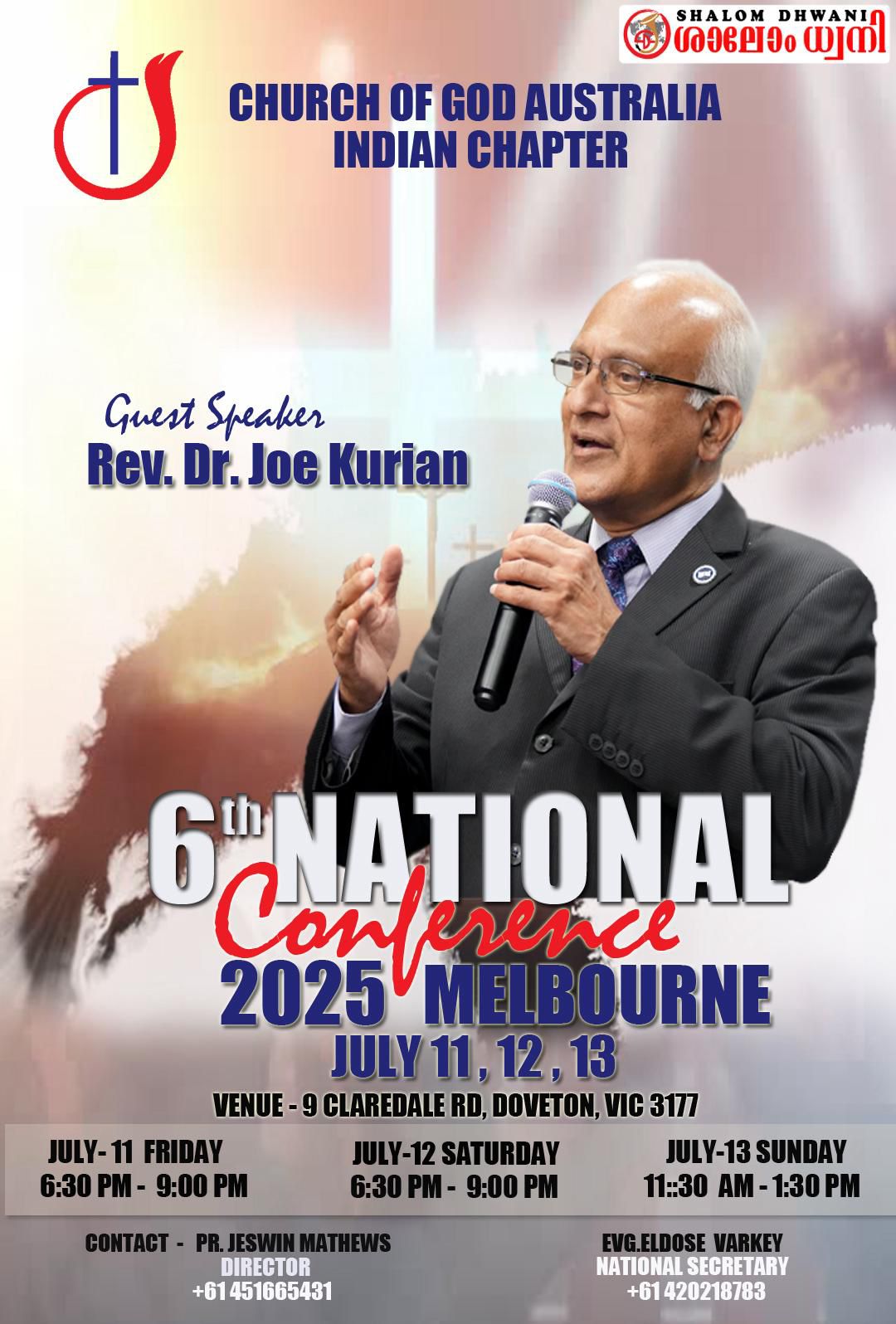 ചർച്ച് ഓഫ് ഗോഡ് ഓസ്ട്രേലിയ – ഇന്ത്യൻ ചാപ്റ്ററിന്റെ ആറാമത്തെ നാഷണൽ കോൺഫറൻസ് 2025 ജൂലൈ 11, 12, 13 തീയതികളിൽ മെൽബണിൽ വച്ച് നടക്കും.