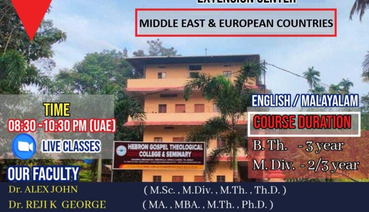 ഹെബ്രോൺ ഗോസ്പൽ തിയോളജിക്കൽ സെമിനാരിയുടെ(HGTS) ഓൺലൈൻ എക്സ്റ്റൻഷൻ ക്ലാസുകൾക്ക് നാളെ തുടക്കമാകും.