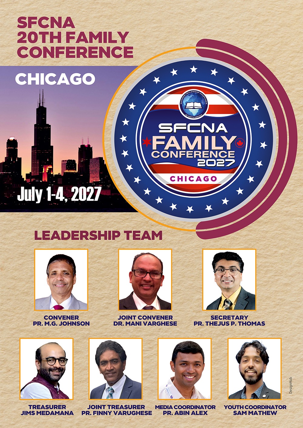 20മത് ശാരോൻ ഫെലോഷിപ്പ് ചർച്ചസ് ഓഫ് നോർത്ത് അമേരിക്ക (SFCNA) ഫാമിലി കോൺഫറൻസ് 2027 ജൂലൈ 1-4 വരെ ചിക്കാഗോയിൽ