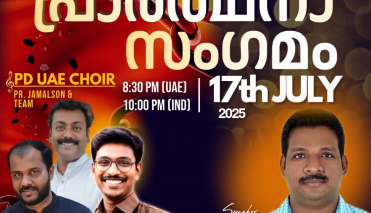 പ്രാർത്ഥനാ ധ്വനി യു.എ.ഇ ചാപ്റ്ററിന്റെ സംഗീത സായാഹ്നവും സുവിശേഷ പ്രഘോഷണവും ഇന്ന് വൈകിട്ട്