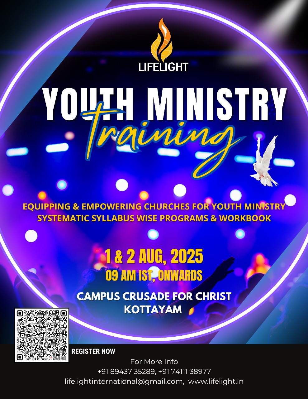 കോട്ടയം: ലൈഫ് ലൈറ്റ് മിനിസ്ട്രിയുടെ ആഭിമുഖ്യത്തിൽ രണ്ടുദിവസത്തെ യുവജനങ്ങൾക്കും, യൂത്ത് ലീഡേഴ്സിന് വേണ്ടിയുള്ള ട്രെയിനിങ് പ്രോഗ്രാം ഓഗസ്റ്റ് 1, 2 തീയതികളിൽ ക്യാമ്പസ് ക്രൂസൈഡ് ഫോർ ക്രൈസ്റ്റ് കോട്ടയം ക്യാമ്പ് സെൻട്രൽ വച്ച് നടക്കും. ബാംഗ്ലൂർ കേന്ദ്രമാക്കി പ്രവർത്തിച്ചു വരുന്ന ലൈഫ് ലൈറ്റ് മിനിസ്ട്രി കഴിഞ്ഞ 10 വർഷത്തിൽ അധികമായി യുവജനങ്ങളുടെ ഇടയിൽ പ്രവർത്തിക്കുകയും, യൂത്ത് ലീഡേഴ്സിനെ എഴുന്നേൽപ്പിക്കുകയും ചെയ്യുന്ന ശുശ്രൂഷയാണ്. യുവജനങ്ങളുടെ സ്വഭാവ രൂപീകരണത്തിനും, വ്യക്തിത്വ വികസനത്തിനും നേതൃത്വ പഠനത്തിനും, ആത്മീക നവോത്ഥാനത്തിനുമുതകുന്ന ക്രമീകൃതമായ സിലബസുകൾ, വർക്കുബുക്കുകൾ, വർക്ക്ഷോപ്പുകൾ, ഗെയിംമുകൾ, ക്രാഫ്റ്റ് വർക്കുകൾ, വീഡിയോ പ്രസന്റേഷൻ, തുടങ്ങി യുവജനങ്ങൾക്ക് ആസ്വദിച്ച് ചെയ്യാൻ കഴിയുന്നതും ദൈവവചന അടിസ്ഥാനത്തിൽ ഉള്ളതുമായ പ്രോഗ്രാമുകളും ആണ് ക്യാമ്പിൽ ക്രമീകരിച്ചിരിക്കുന്നത്. പാസ്റ്റർമാരായ റോയ് മാത്യു ബാംഗ്ലൂർ, ഡാനിയേൽ യോഹന്നാൻ, ജോസ് ജോയ്, റെജി സ്റ്റീഫൻ എന്നീ ദൈവദാസന്മാർ ക്ലാസുകൾ നയിക്കും. പാസ്റ്റർ ബിനോഷ് തങ്കച്ചനും, ഫെബിൻ കെ എബ്രഹാം ക്യാമ്പുകൾക്ക് നേതൃത്വം നൽകും