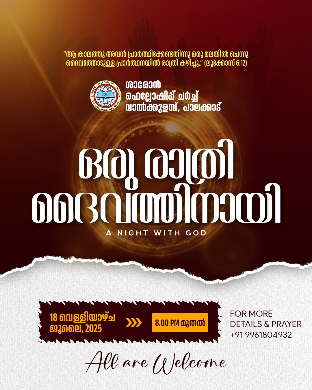 വാൽക്കുളമ്പ് ശാരോൻ ഫെല്ലോഷിപ്പ് ചർച്ച് മുഴുരാത്രി പ്രാർത്ഥന