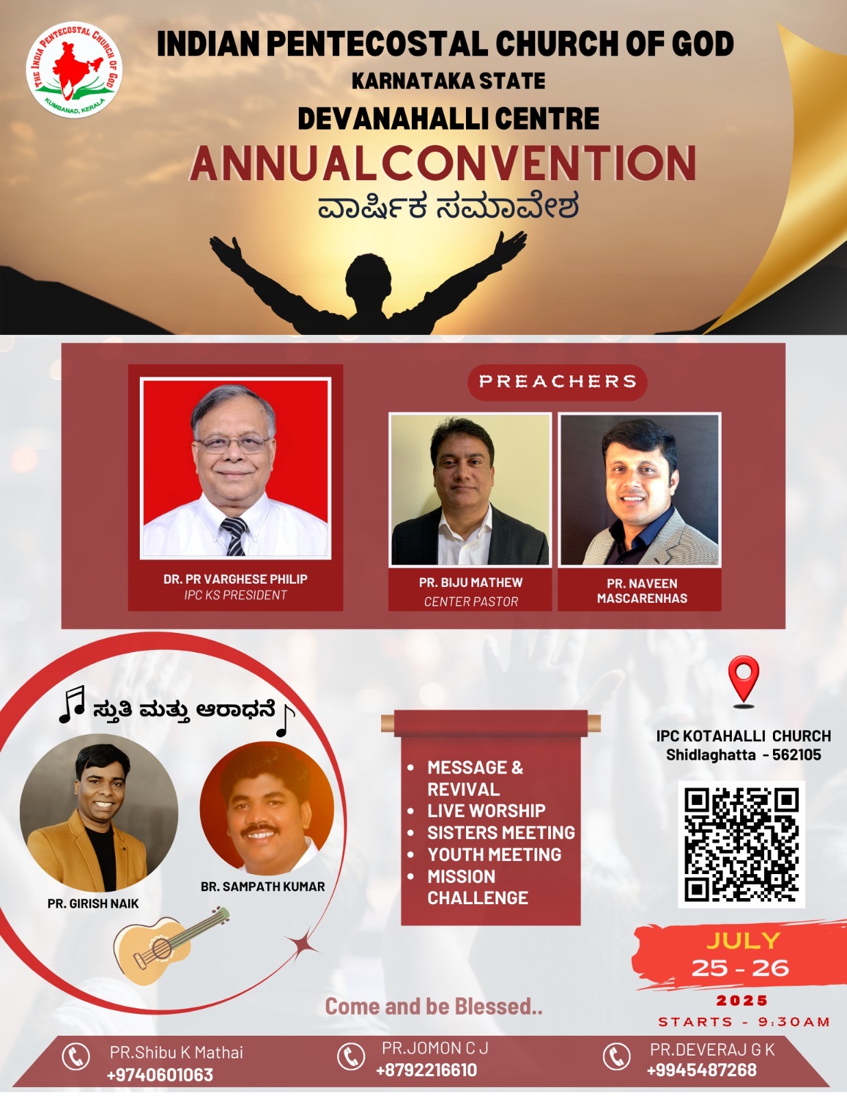ഐപിസി ദേവനഹള്ളി സെൻ്റർ കൺവെൻഷൻ ജൂലൈ 25 – 26 ന്