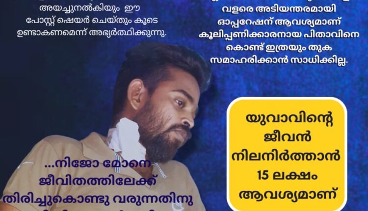 32 വയസ്സായ യുവാവിനെ ജീവിതത്തിലേക്ക് തിരിച്ചുകൊണ്ടു വരുന്നതിന് 15 ലക്ഷം രൂപ വേണം