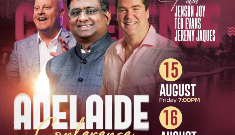 Pr. Jenson Joy, Pr. Ted Evans and Pr. Jeremy Jaques will be the key speakers for this conference. These meetings are scheduled to take place on Fri, 15th Aug at 7:00 pm and Sat, 16th Aug at 6:30pm at 6 Jervois Street, Albert Park, SA.
