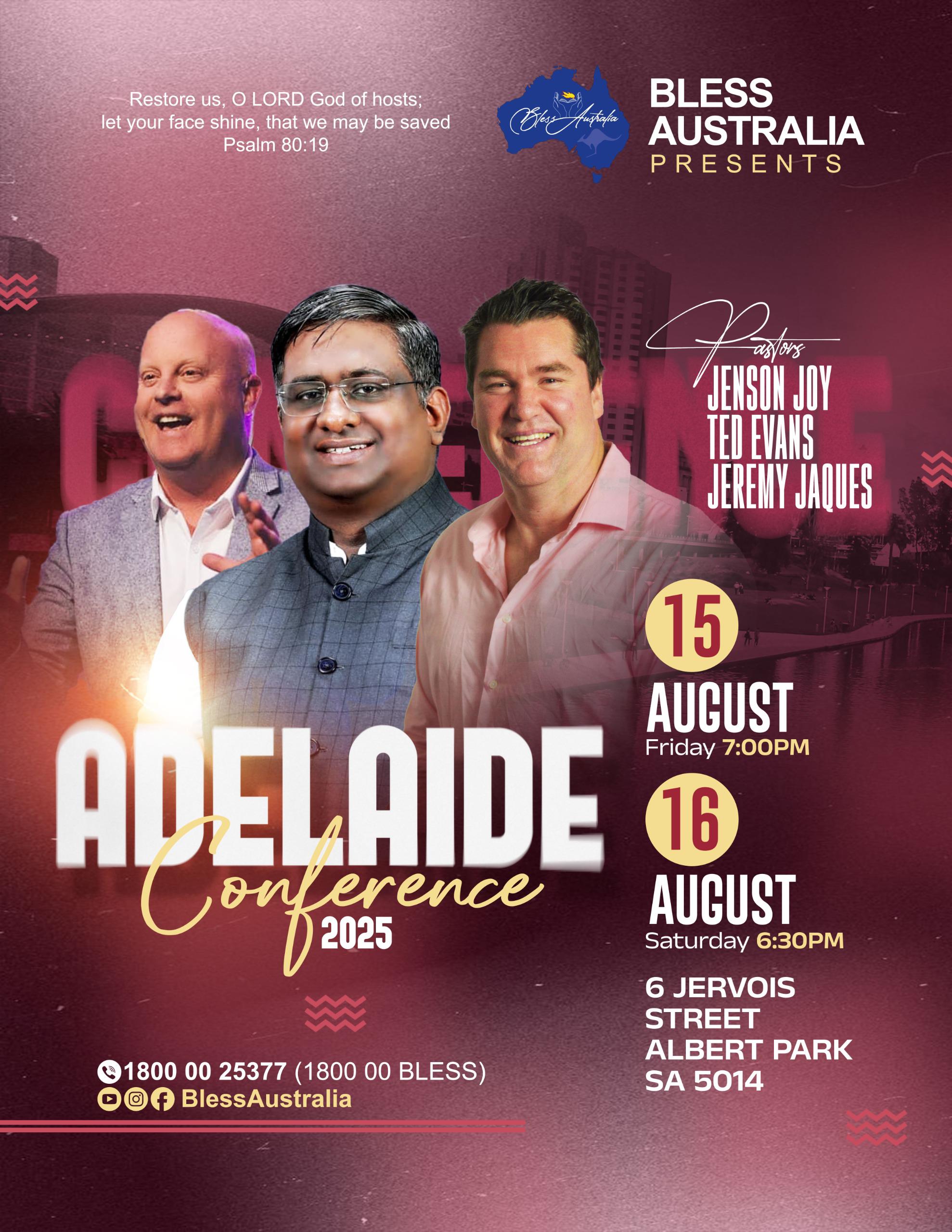 Adelaide, Australia: The much-anticipated Bless Australia Conference 2025 is just weeks away! Join us for a blessed worship session that will lift hearts and stir faith. We have anointed preachers who will deliver a timely Word that speaks directly to this season.