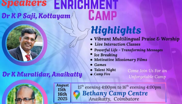 ‘എലൂത്രിയ’ യുവജന ക്യാമ്പ് കോയമ്പത്തൂരിൽ ഓഗസ്റ്റ് 15 മുതൽ