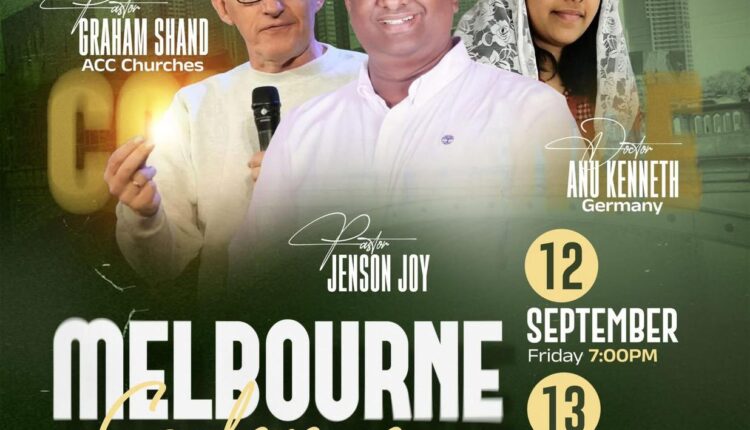 Pr. Jenson Joy, Pr. Graham Shand and Dr. Anu Kenneth will be ministering from the Word of God. These meetings are scheduled to take place on Fri, 12th Sep at 7:00 pm and Sat, 13th Sep at 6:30pm at 9 Claredale Road, Doveton, VIC.
