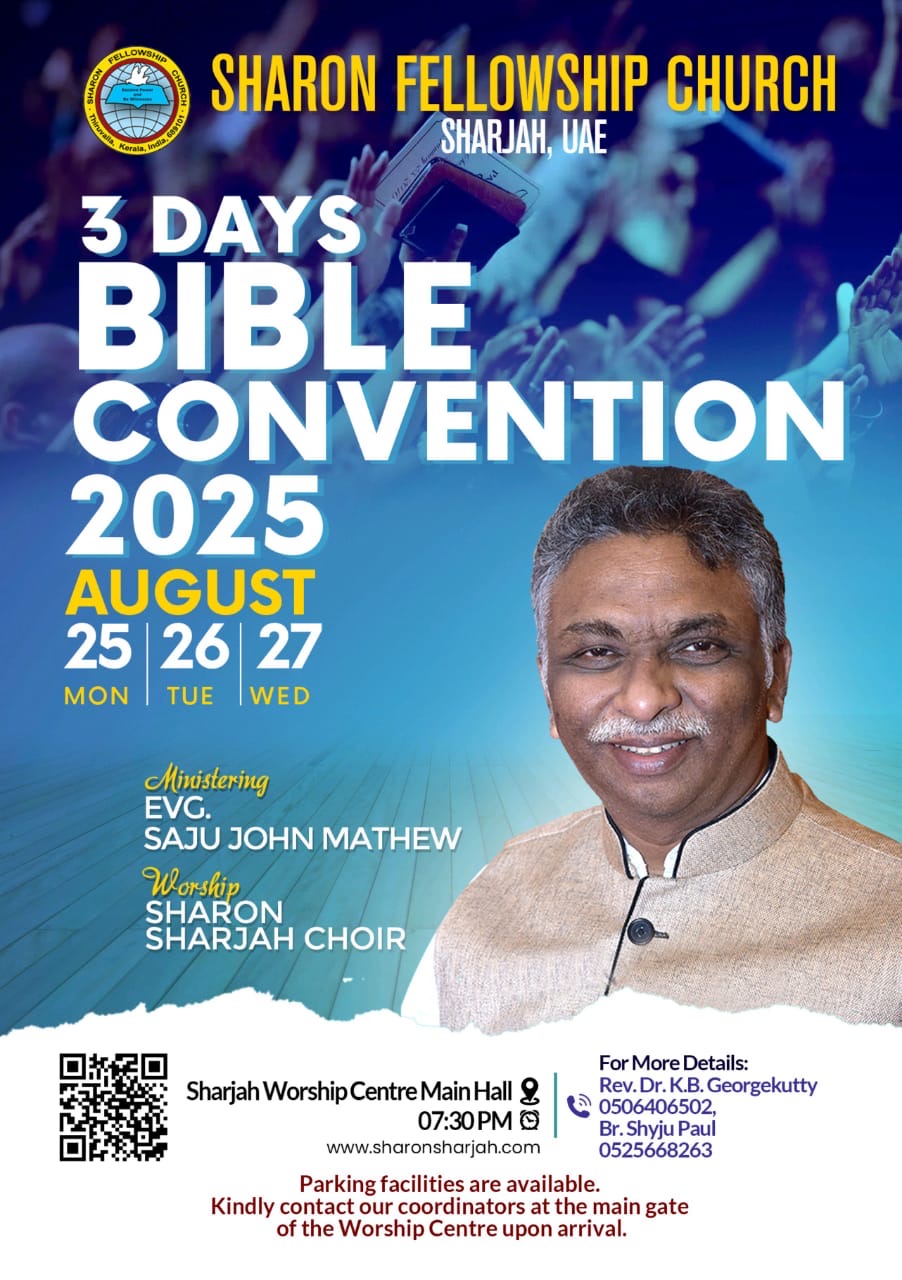 ശാരോൻ ഫെലോഷിപ് ഷാർജ – ത്രിദിന ബൈബിൾ കൺവെൻഷൻ ഓഗസ്റ്റ് 25ന്