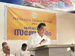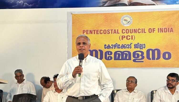 പെന്തകോസ്ത് കൗൺസിൽ ഓഫ് ഇന്ത്യ, കോഴിക്കോട് ജില്ലാ ഏകദിന സമ്മേളനത്തിൽ മുഖ്യ പ്രഭാഷണം നടത്തുകയായിരുന്നു അദ്ദേഹം.