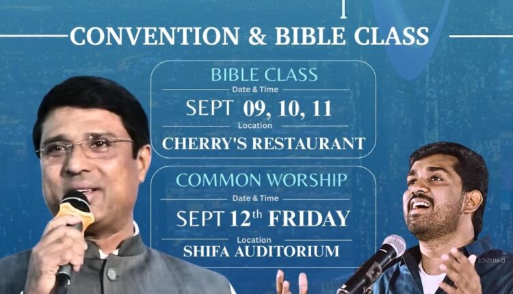 റിയാദ്: ചർച്ച് ഓഫ് ഗോഡ് ഇൻ ഇന്ത്യാ കേരള സ്റ്റേറ്റ് റിയാദ് റീജിയന്റെ കൺവെൻഷനും വേദപഠന ക്ലാസുകളും ചൊവ്വ, ബുധൻ, വ്യാഴം ദിവസങ്ങളിൽ മലാസിലുള്ള ചെറീസ് റെസ്റ്റോറന്റ് ഓഡിറ്റോറിയത്തിൽ നടക്കും. ചർച്ച് ഓഫ് ഗോഡ് കേരള സ്റ്റേറ്റ് ഓവർസീർ റവ. വൈ റെജിയാണ് മുഖ്യാതിഥി. ഡോ. ഇവാ. മെൽറ്റൺ സേവ്യർ സംഗീത ശുശ്രൂഷ നയിക്കും.