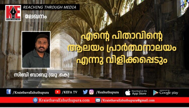 ലേഖനം: എന്റെ പിതാവിൻ്റെ ആലയം പ്രാർത്ഥനാലയം എന്നു വിളിക്കപ്പെടും | സിബി ബാബു (യു .കെ)