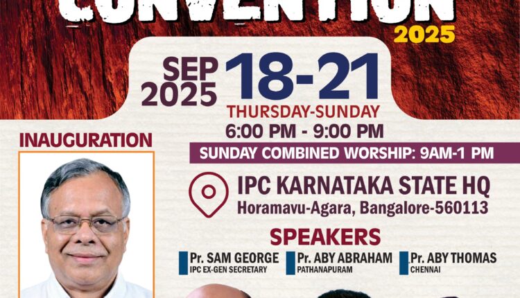 ഐ.പി.സി ബെംഗളുരു സെന്റർ വൺ 19-മത് കൺവൻഷൻ സെപ്റ്റംബർ18 മുതൽ