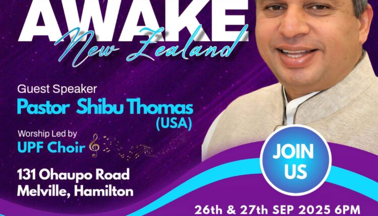 ന്യൂസിലാൻഡ്: യൂണൈറ്റഡ് പെന്തക്കോസ്ത് ഫെലോഷിപ്പ് ഹാമിൽട്ടണിന്റെ നേതൃതത്തിൽ ന്യൂസീലൻഡിലെ ആദ്യ ഐക്യ സമ്മേളനമായ അവേക് ന്യൂസീലൻഡ് യു.പി.എഫ് കോൺഫറൻസ് സെപ്റ്റംബർ 26 നും 27 നും യഥാക്രമം വൈകീട്ട് 6 മണിക്കും രാവിലെ 10 മണിക്ക് ഫാമിലി കോൺഫറൻസും ഹാമിൽട്ടൺ സൗത്ത് ബാപ്റ്റിസ്റ്റ് ചർച്ചിൽ വെച്ച് നടക്കും. 28 ഞായറാഴ്ച നടക്കുന്ന സംയുക്ത സഭാ യോഗത്തിൽ പാസ്റ്റർ ഷിബു തോമസ് ഒക്കലഹോമ പ്രസംഗിക്കും. ആരാധനകൾക്ക് യു.പി.എഫ് കൊയർ നേതൃതം നൽകും.