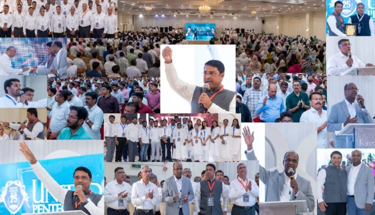 റിയാദ് :യുണൈറ്റഡ് പെന്തെകോസ്തൽ കൺവെൻഷന്റെ നേതൃതത്തിൽ ചർച്ച് ഓഫ് ഗോഡ് (ഫുൾ ഗോസ്പെൽ ) ഇൻ ഇന്ത്യ കേരള സ്റ്റേറ്റ് കെ. എസ്. ഏ റീജിയന്റെ 25-ആം വാർഷികവും( രജത ജൂബിലി )സംയുക്ത ആരാധനയും 2025 സെപ്റ്റംബർ 12 – ആം തീയതി വലിയ ആത്മീയ സാന്നിധ്യത്തിന്റെ നിറവിൽ നടത്തപ്പെട്ടു. ചർച്ച് ഓഫ് ഗോഡ് (ഫുൾ ഗോസ്പെൽ ) ഇൻ ഇന്ത്യ കേരള സ്റ്റേറ്റ് കെ. എസ്. ഏ റീജിയന്റെ പ്രസിഡന്റ് റവ. മാത്യു ജോർജ് ( റെജി തലവടി ) പ്രാർത്ഥിച്ചു ഉത്ഘാടനം ചെയ്ത പ്രസ്തുത മഹോത്സവം സൗദി അറേബ്യയുടെ ആത്മീയ ചരിത്രത്തിൽ ഒരു പുതിയ അദ്ധ്യായം തുറന്നു.