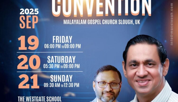 മലയാളം ഗോസ്പൽ ചർച്ച് വാർഷിക കൺവൻഷൻ ഇന്ന് മുതൽ യു.കെയിലെ സ്ലോയിൽ