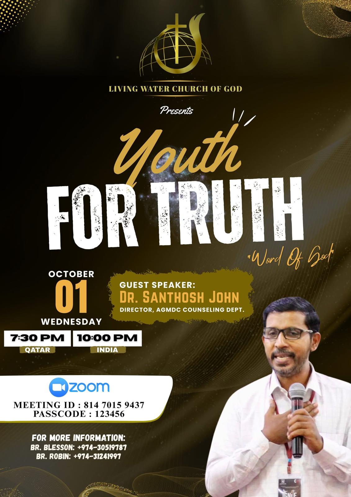 ദോഹ ലിവിങ് വാട്ടർ ചർച്ച് ഓഫ് ഗോഡിൻ്റ് നേതൃത്വത്തിൽ “യൂത്ത് ഫോർ ട്രൂത്ത്”