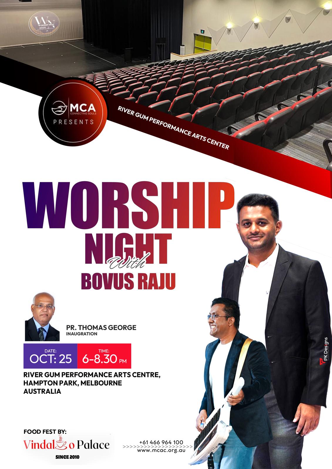 മെൽബൺ: മെൽബൺ ക്രിസ്ത്യൻ അസ്സബ്ലിയുടെ ആഭിമുഖ്യത്തിൽ ഒക്ടോബർ 25ാം തിയ്യതി വൈകിട്ട് ആറ് മണി മുതൽ, ഹാംന്റൺ പാർക്കിലുള്ള River Gum Performance Arts Centre -ൽ വച്ച് സംഗീത സന്ധ്യ നടത്തപ്പെടുന്നു.