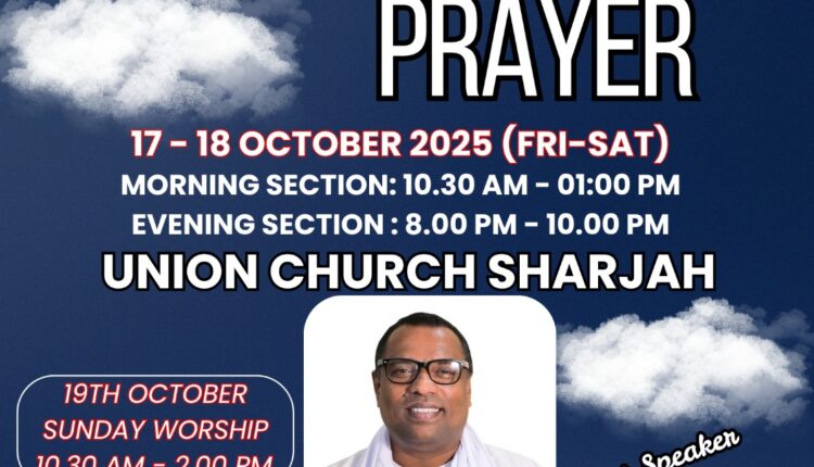 ഷാർജ അസംബ്ലീസ് ഓഫ് ഗോഡ് ഉപവാസ പ്രാർത്ഥനയും ആരാധനയും ഒക്ടോബർ 17 മുതൽ