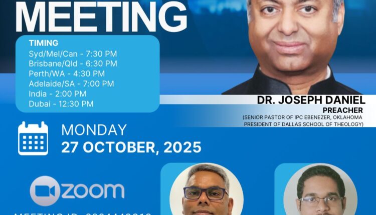 Australian United Pentecostal Churches (AUPC) is conducting the next monthly prayer meeting on 27th October 2025, Monday, for the spiritual awakening of Australia. Let this be more than just another online gathering, come prepared for an encounter with the living God, right where you are. The presence of God is not limited by distance.