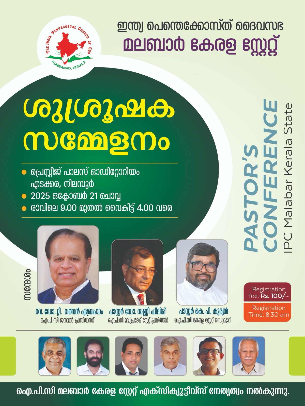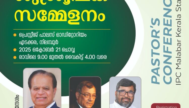 ഐ.പി.സി മലബാർ കേരള സ്റ്റേറ്റ് ശുശ്രൂഷകാ സമ്മേളനം ഒക്ടോബർ 21