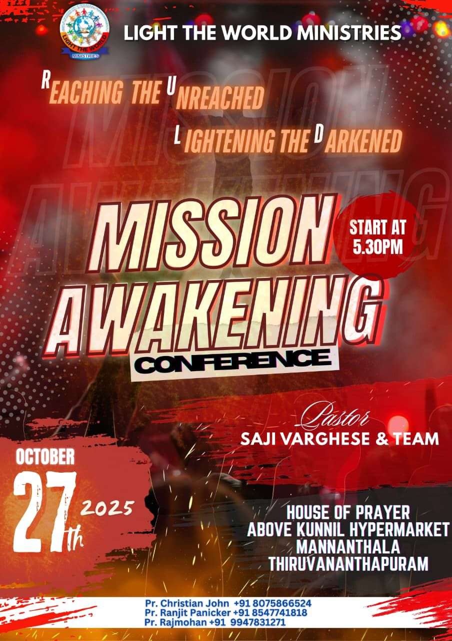 ലൈറ്റ് ദ വേൾഡ് മിനിസ്ട്രീസിന്റെ നേതൃത്വത്തിൽ മിഷൻ അവെക്കണിങ് പ്രോഗ്രാം ഒക്ടോബർ മാസം 27 ന്