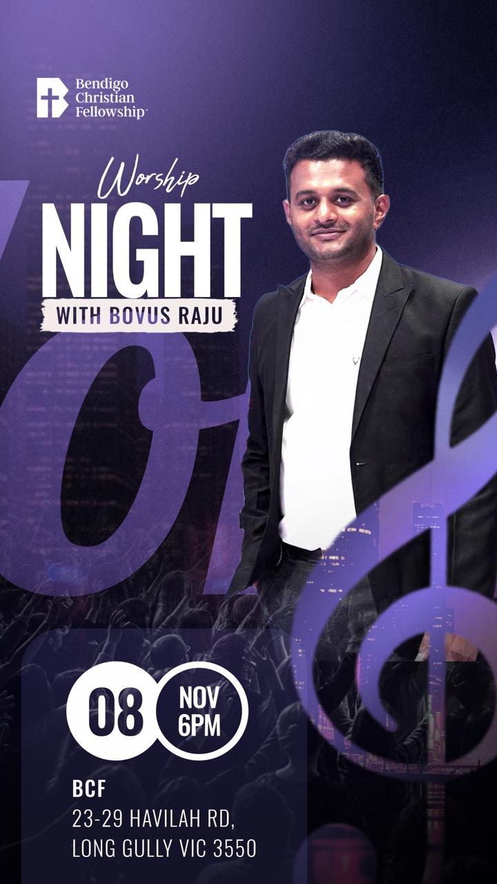 ബെൻഡിഗോ (ഓസ്ട്രേലിയ): ബെൻഡിഗോ ക്രിസ്ത്യൻ അസ്സബ്ലിയുടെ ആഭിമുഖ്യത്തിൽ നവംബർ 8-ാം തിയ്യതി ശെനിയാഴ്ച വൈകിട്ട് ആറ് മണി മുതൽ, ലോങ്ങ് ഗള്ളി കമ്മ്യൂണിറ്റി സെന്ററിൽ വച്ച് സംഗീത സന്ധ്യ നടക്കും. അനുഗ്രഹീത ഗായകൻ ഇവാ. ബോവസ് രാജു ഗാന ശുശ്രൂഷകൾക്ക് നേതൃത്വം നൽകും. ബെൻഡിഗോയിലെ ആദ്യത്തെ മലയാളം പെന്തെക്കോസ്റ്റൽ ചർച്ച് ആണ്. ഏവരെയും ഈ സംഗീത സന്ധ്യയിലേക്ക് സ്വാഗതം ചെയ്യുന്നതായി ഭാരവാഹികൾ അറിയിച്ചു