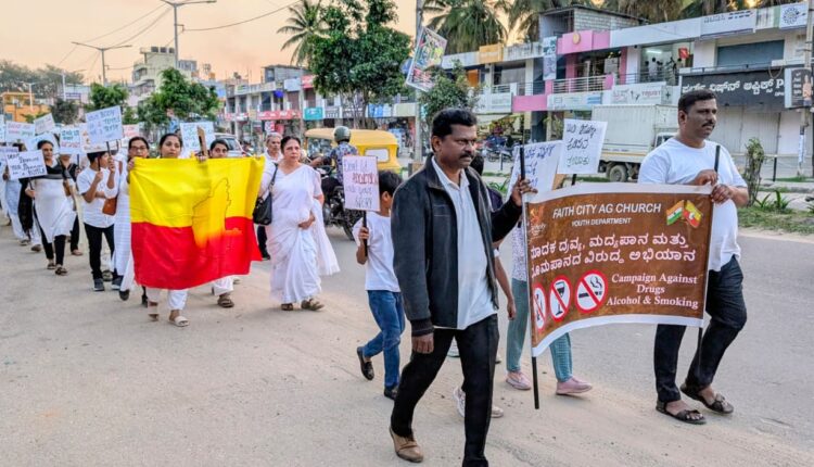 ബെംഗളൂരു: ഗെദ്ദലഹള്ളി ആസ്ഥാനമായ ഫെയ്ത് സിറ്റി അസംബ്ലി ഓഫ് ഗോഡ് ചർച്ച് യുവജന വിഭാഗത്തിന്റെ ആഭിമുഖ്യത്തിൽ മയക്കുമരുന്ന്, മദ്യപാനം, പുകവലി എന്നിവയ്ക്കെതിരെ ബോധവത്കരണ റാലി നടത്തി.