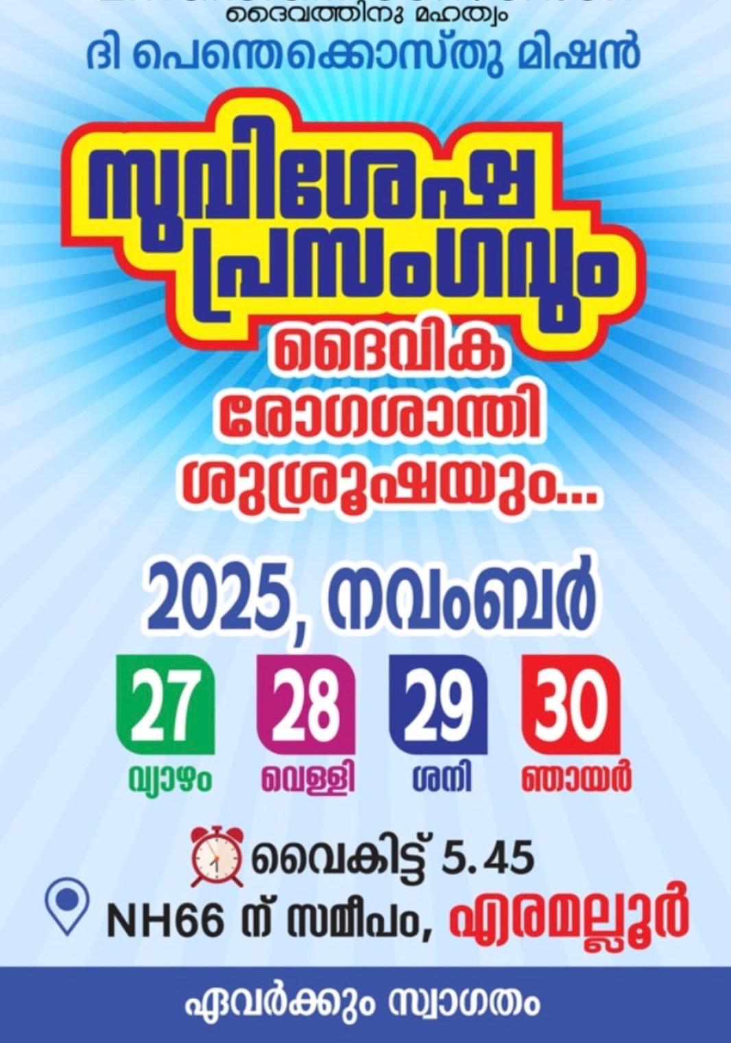 കേരളത്തിലെ സഭയുടെ 2026- ലെ സെന്റർ കൺവൻഷനുകള്ക്ക് തുടക്കവും പുതിയ മലയാളം ‘കൺവൻഷൻ ഗീതങ്ങൾ’ പുറത്തിറക്കുന്നതും എറണാകുളം കൺവൻഷനിലാണ്.
