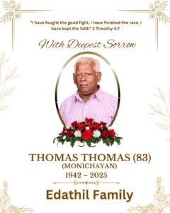 ഇടത്തിൽ തോമസ് തോമസ് (മോനി -83) നിര്യാതനായി