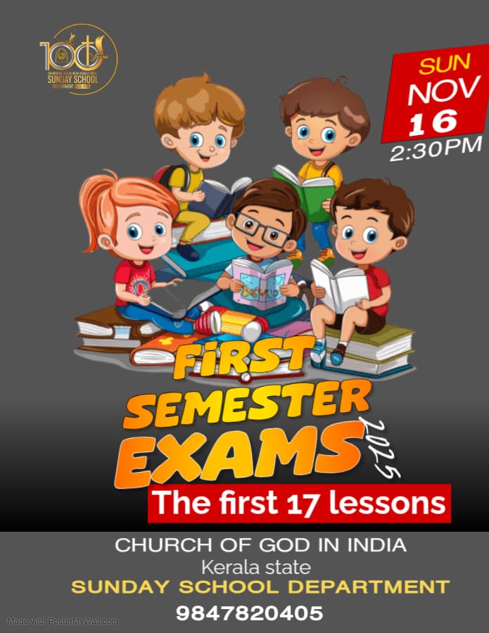 ചർച്ച് ഓഫ് ഗോഡ് സൺഡേസ്കൂൾ ഫസ്റ്റ് സെമസ്റ്റർ പരീക്ഷ നവംബർ 16 ന്
