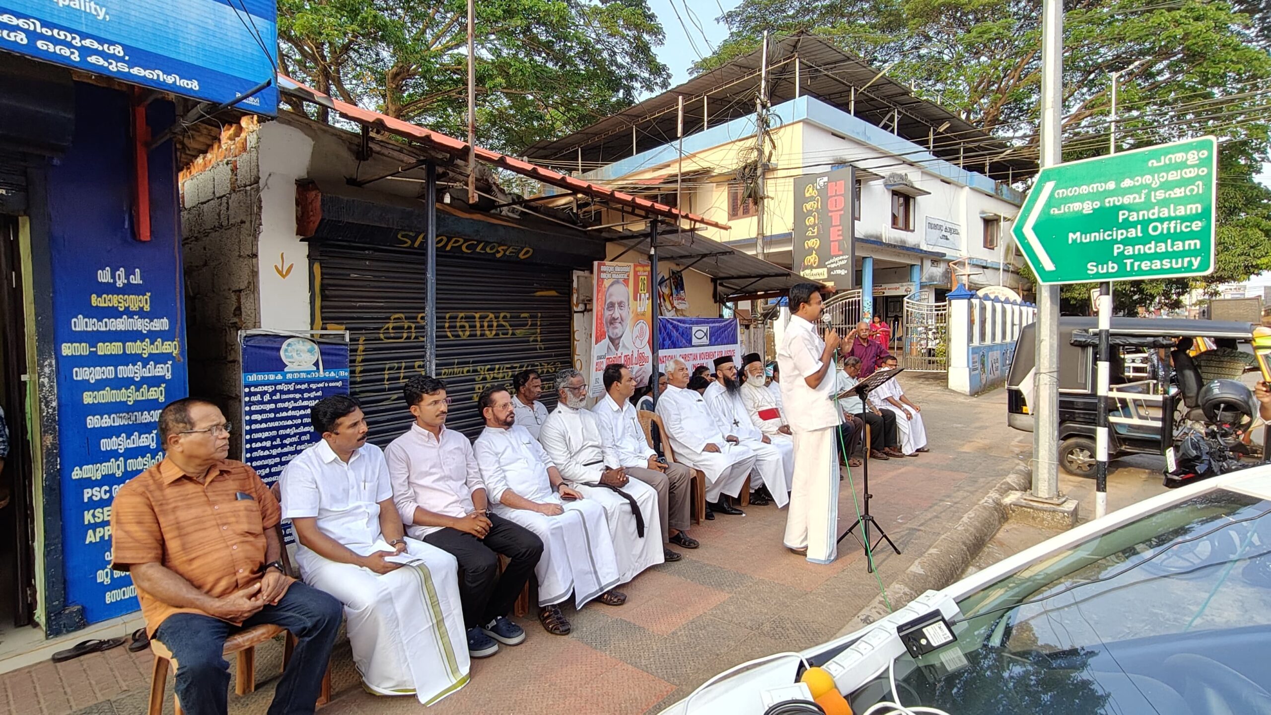 Photo caption.നാഷണൽ ക്രിസ്ത്യൻ മൂവ്മെന്റ് ഫോർ ജസ്റ്റിസ് പത്തനംതിട്ട ജില്ലാ കമ്മിറ്റി പന്തളത്ത് നടത്തിയ സായാഹ്ന ധർണ എൻ സി എം ജെ സംസ്ഥാന പ്രസിഡൻറ് ഡോ. പ്രകാശ് പി തോമസ് ധർണ്ണ ഉദ്ഘാടനം ചെയ്യുന്നു.