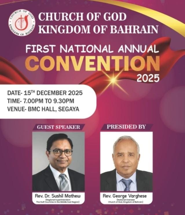 ചർച്ച് ഓഫ് ഗോഡ് ബഹ്റൈൻ റീജിയന്റെ പ്രഥമ ദേശീയ കൺവെൻഷൻ ഡിസംബർ 15-ന്