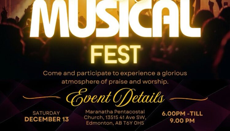 എഡ്മൺടൺ: എഡ്മൺടൺ മലയാളം പെന്തക്കോസ്റ്റൽ ചർച്ചുകളുടെ കൂട്ടായ്മയായ യുണൈറ്റഡ് ക്രിസ്ത്യൻ ഫെല്ലോഷിപ്പ് നടത്തുന്ന രണ്ടാം മ്യൂസിക് ഫെസ്റ്റ് 2025 ഡിസംബർ 13-ാം തീയതി വൈകുന്നേരം 6 മണിക്ക് മരനാഥ പെന്തക്കോസ്റ്റൽ ചർച്ചിൽ നടക്കും.