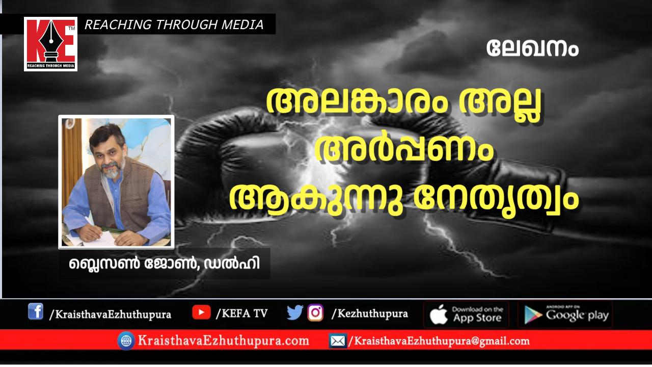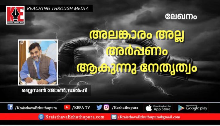 ലേഖനം: അലങ്കാരം അല്ല അർപ്പണം ആകുന്നു നേതൃത്വം | ബ്ലെസൺ ജോൺ, ഡൽഹി