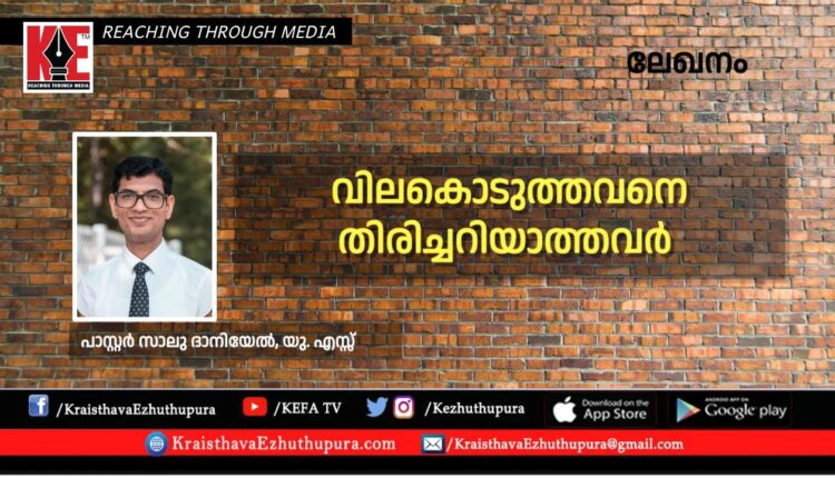 ലേഖനം: വിലകൊടുത്തവനെ തിരിച്ചറിയാത്തവർ | പാസ്റ്റർ സാലു ദാനിയേൽ, യു. എസ്സ്