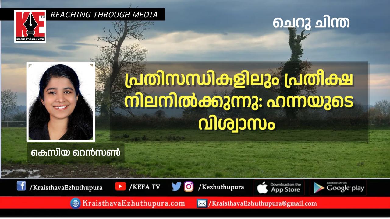 ചെറു ചിന്ത: പ്രതിസന്ധികളിലും പ്രതീക്ഷ നിലനിൽക്കുന്നു: ഹന്നയുടെ വിശ്വാസം | കെസിയ റെൻസൺ