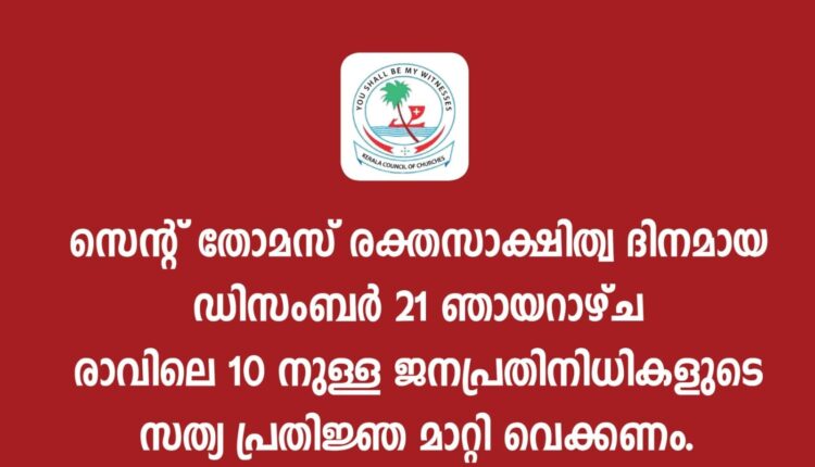 തദ്ദേശ സ്വയംഭരണ വകുപ്പിൻ്റെ സർക്കുലർ പിൻവലിച്ച് സത്യപ്രതിജ്ഞാ തീയതി മാറ്റിവെക്കണമെന്ന് സംസ്ഥാന പ്രസിഡൻ്റ് അഡ്വ. പ്രകാശ് പി തോമസ്, സംസ്ഥാന ജനറൽ സെക്രട്ടറി പാസ്റ്റർ ജെയ്സ് പാണ്ടനാട് എന്നിവർ പ്രസ്താവനയിൽ ആവശ്യപ്പെട്ടു.