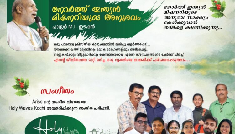 സംഗീത സായാഹ്നവും വചനപ്രഘോഷണവും നടക്കും. സഭാ അങ്കണത്തിൽ തയ്യാർ ചെയ്യുന്ന പന്തലിൽ കൊച്ചിൻ ഹോളിവേവ്സ് ഒരുക്കുന്ന സംഗീതവിരുന്നോടെ തുടക്കമാകും.