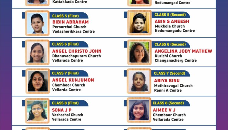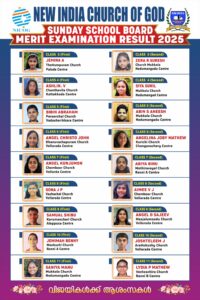 ന്യൂ ഇന്ത്യ ചർച്ച് ഓഫ് ഗോഡ് സൺഡേസ്കൂൾ മെറിറ്റ് പരീക്ഷ ഫലം പ്രഖ്യാപിച്ചു.