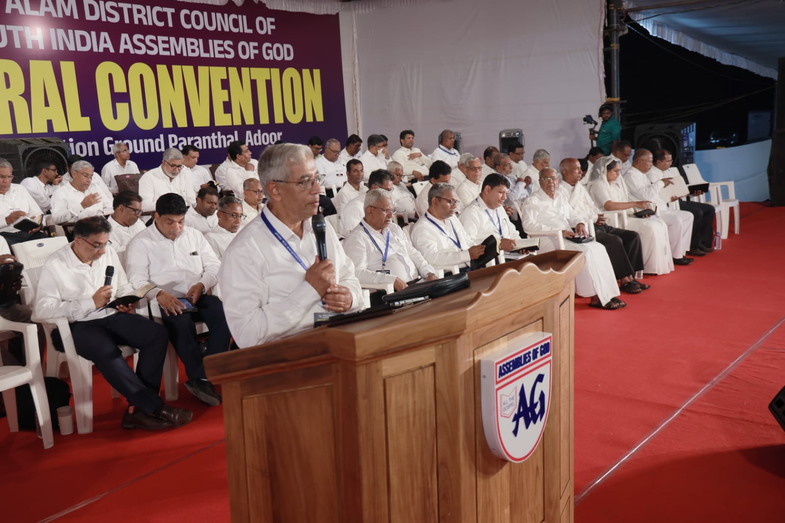 അസംബ്ലീസ് ഓഫ് ഗോഡ് മലയാളം ഡിസ്ട്രിക്ട് ജനറൽ കൺവൻഷൻ അടൂർ-പന്തൽ എ ജി ജനറൽ കൺവൻഷൻ നഗറിൽ ഉദ്ഘാടനം ചെയ്തു പ്രസംഗിക്കുകയായിരുന്നു പാസ്റ്റർ ടി.ജെ.സാമുവേൽ. വിശ്വാസി ക്രിസ്തുവുമായുള്ള മഹത്വത്തിൻ്റെ അനുഭവത്തിൽ ജീവിക്കണം അതിന് ഓരോ വിശ്വാസിയും ദൈവനിയോഗവും ലക്ഷ്യവും തിരിച്ചറിഞ്ഞ് ജീവിക്കണമെന്നും ആത്യന്തിക ലക്ഷ്യത്തിൽ നിന്നും വ്യതിചലിപ്പിക്കുവാൻ ശ്രമിക്കുന്ന ചുറ്റുപാടുകളിൽ നിന്നും സാമൂഹ്യ സാഹചര്യങ്ങളിൽ നിന്നും അകന്ന് നിന്ന് ദൈവ പ്രസാദമുള്ള ജീവിതം നയിക്കുന്നതിൽ അതീവ ശ്രദ്ധ പുലർത്തി വിശ്വാസികൾ സമൂഹത്തിന് നന്മയായി തീരണമെന്നും അദ്ദേഹം ഉദ്ബോധിപ്പിച്ചു. എ ജി സഭ ഉത്തരമേഖലാ ഡയറക്ടർ പാസ്റ്റർ എം.ടി. സൈമൺ അദ്ധ്യക്ഷനായിരുന്നു.