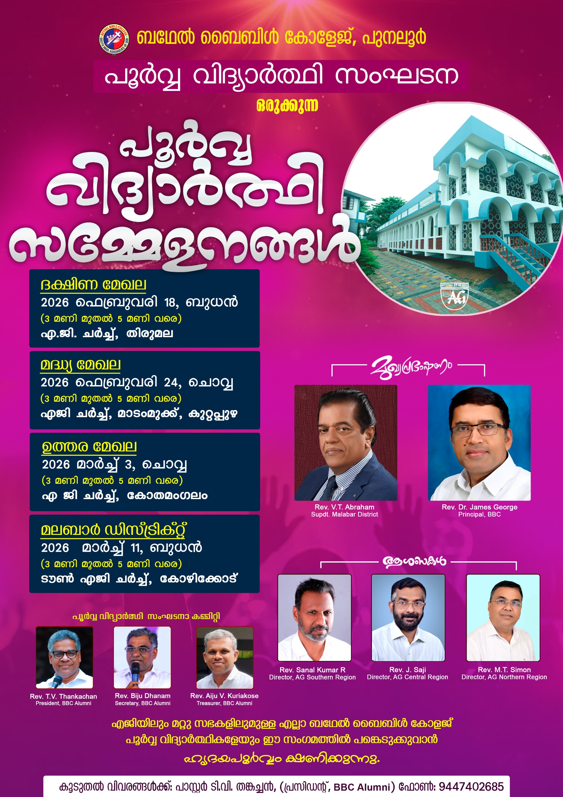 ബഥേൽ ബൈബിൾ കോളേജിലെ പൂർവ്വവിദ്യാർത്ഥി സംഗമങ്ങൾക്ക് ഒരുക്കമായി.