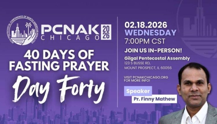 പിസിനാക് ചിക്കാഗോ 40ദിന ഉപവാസ പ്രാർഥന സമാപനം ഫെബ്രുവരി 18 ബുധനാഴ്ച