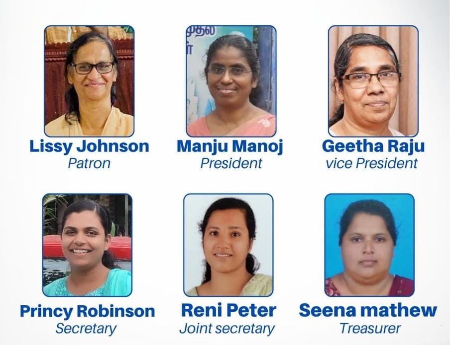 പാട്രൻ ആയി ലിസ്സി ജോൺസൺ, പ്രസിഡന്റായി മഞ്ജു മനോജ്, വൈസ് പ്രസിഡന്റായി ഗീതാ രാജു, സെക്രട്ടറിയായി പ്രിൻസി റോബിൻസൺ, ജോയിന്റ് സെക്രട്ടറിയായി റെനി പീറ്റർ, ട്രഷററായി സീന മാത്യു എന്നിവരെ തിരഞ്ഞെടുത്തു.