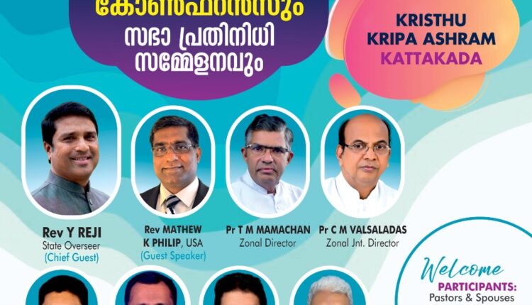 തിരുവനന്തപുരം: ചർച്ച് ഓഫ് ഗോഡ് ഇൻ ഇന്ത്യ കേരള സ്റ്റേറ്റ് സൗത്ത് സോണിന്റെ നേതൃത്വത്തിൽ പാസ്റ്റേഴ്സ് ഫാമിലി കോൺഫറൻസ് മാർച്ച് 21 ന് തിരുവനന്തപുരം കാട്ടാക്കടയ്ക്കു അടുത്തുള്ള ക്രിസ്തു കൃപാശ്രമം ആഡിറ്റോറിയത്തിൽ വച്ച് നടക്കും.