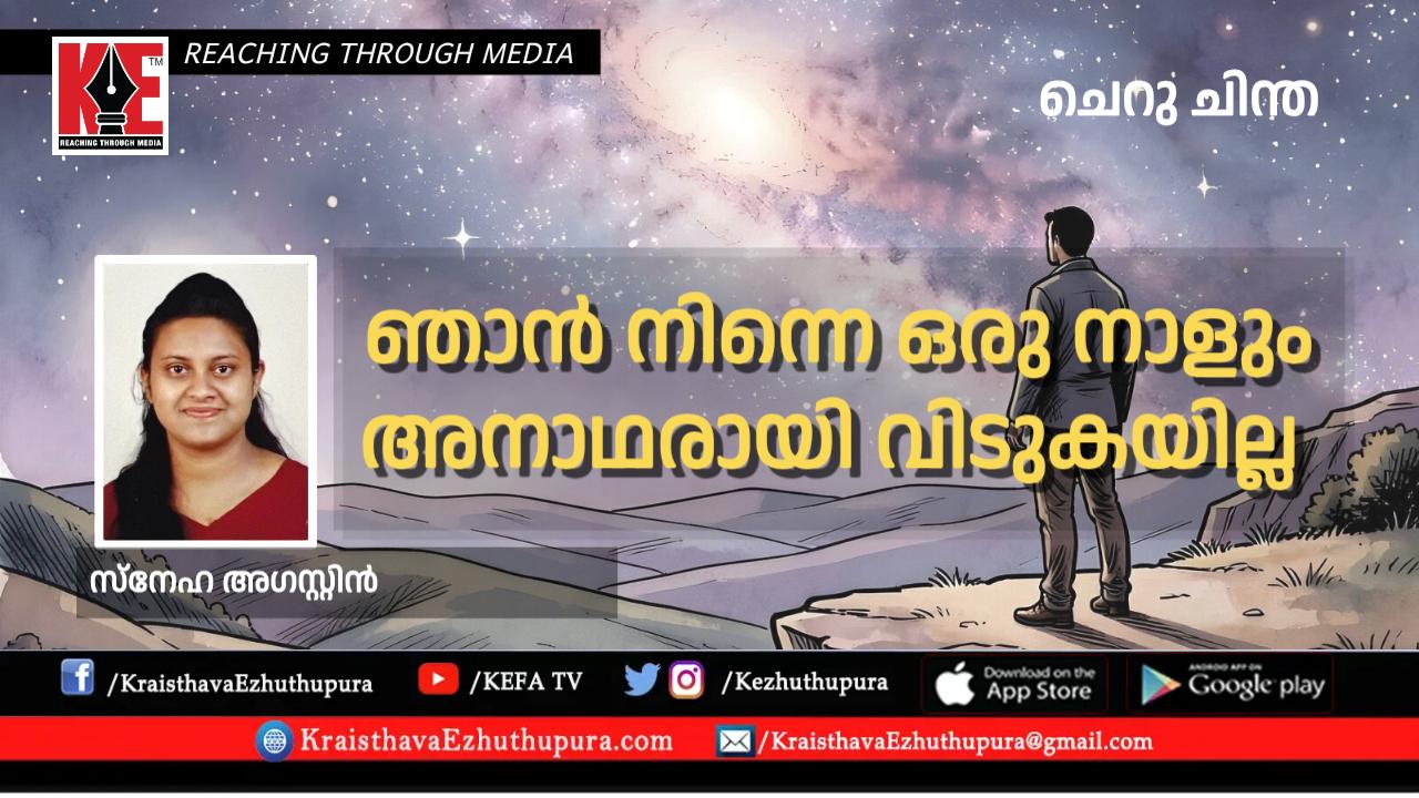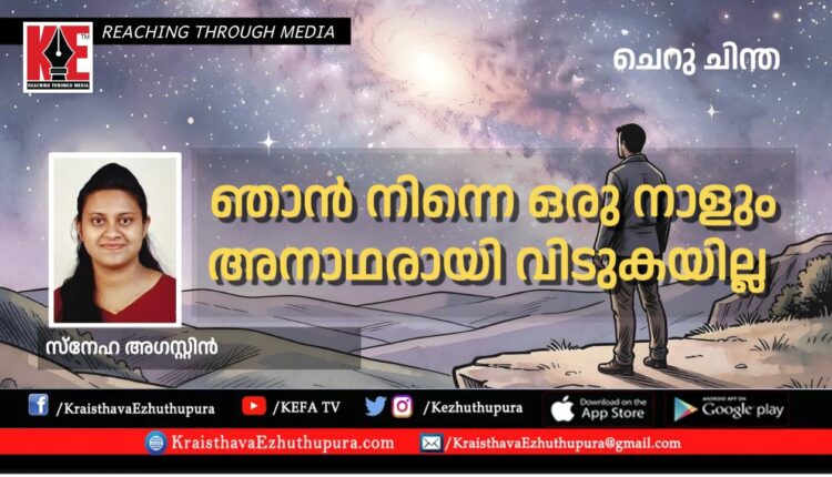 ചെറു ചിന്ത: ഞാൻ നിന്നെ ഒരു നാളും അനാഥരായി വിടുകയില്ല | സ്നേഹ അഗസ്റ്റിൻ
