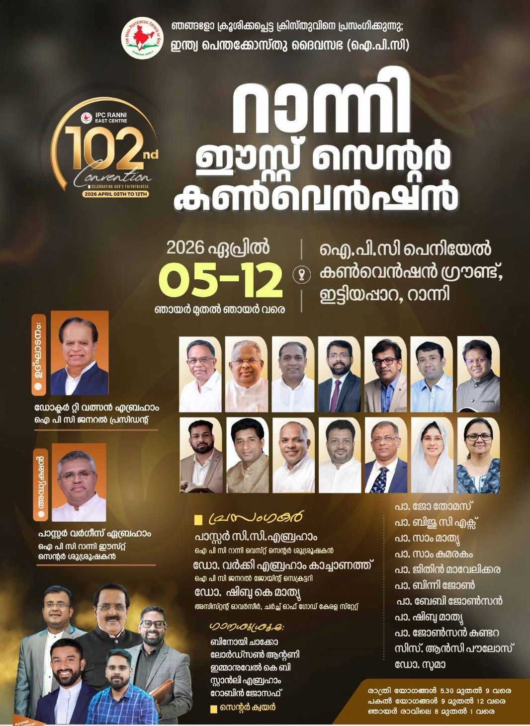 ഐ.പി.സി റാന്നി ഈസ്റ്റ് സെന്റർ 102-ാമത് കൺവെൻഷൻ ഏപ്രിൽ 5 മുതൽ