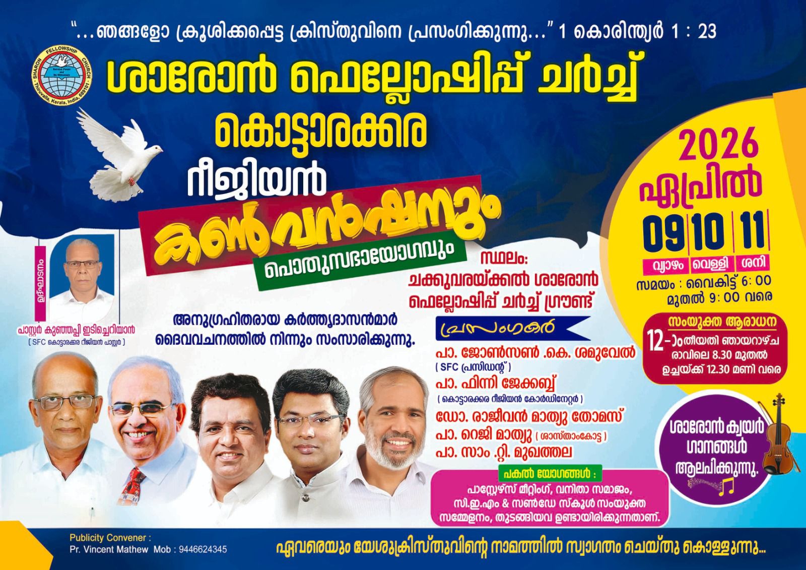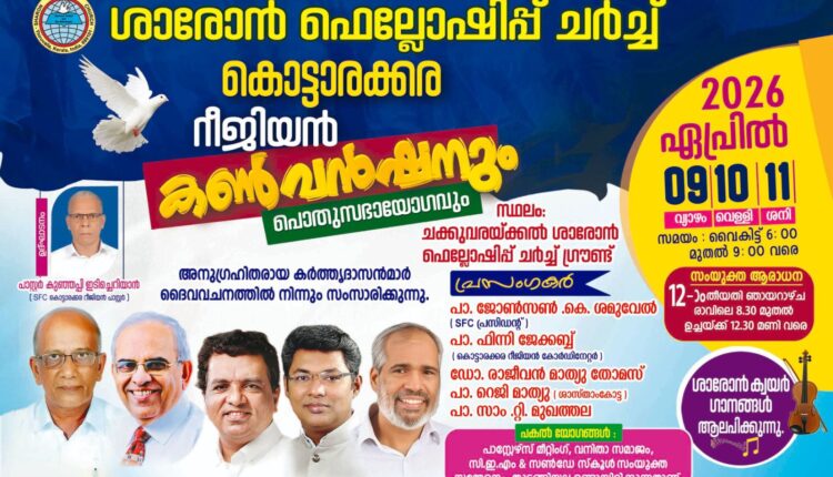 ശാരോൻ ഫെലോഷിപ്പ് ചർച്ച് കൊട്ടാരക്കര റീജിയൻ കൺവൻഷൻ ഏപ്രിൽ 9നു തുടക്കം