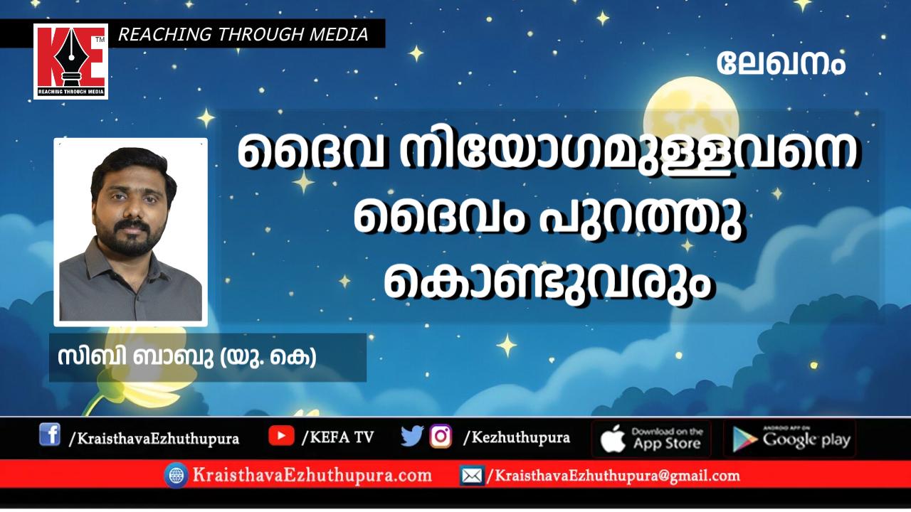 ലേഖനം: ദൈവ നിയോഗമുള്ളവനെ ദൈവം പുറത്തു കൊണ്ടുവരും | സിബി ബാബു (യു. കെ)